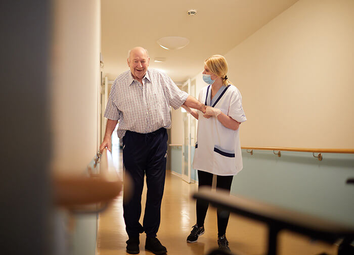 Unsere Pflege vermittelt Sicherheit und fördert die Selbstständigkeit. Dabei gehen wir genau auf die individuellen Bedürfnisse ein und unterstützen vorhandene Fähigkeiten. Gezielt für Menschen mit kognitiven Einschränkungen und bis Pflegegrad 5 befinden sich im Erdgeschoss 31 vollstationäre Plätze. Auf den oberen Etagen, wo sich auch die Apartments des Betreuten Wohnens befinden, gibt es insgesamt 23 Pflegewohnungen für Bewohnerinnen und Bewohner mit den Pflegegraden 2 und 3. So geben wir Menschen mit unterschiedlichen Kompetenzen ein Zuhause, in dem sie ganz nach Bedarf und zu jeder Tages- und Nachtzeit unsere Unterstützung in Anspruch nehmen können.
